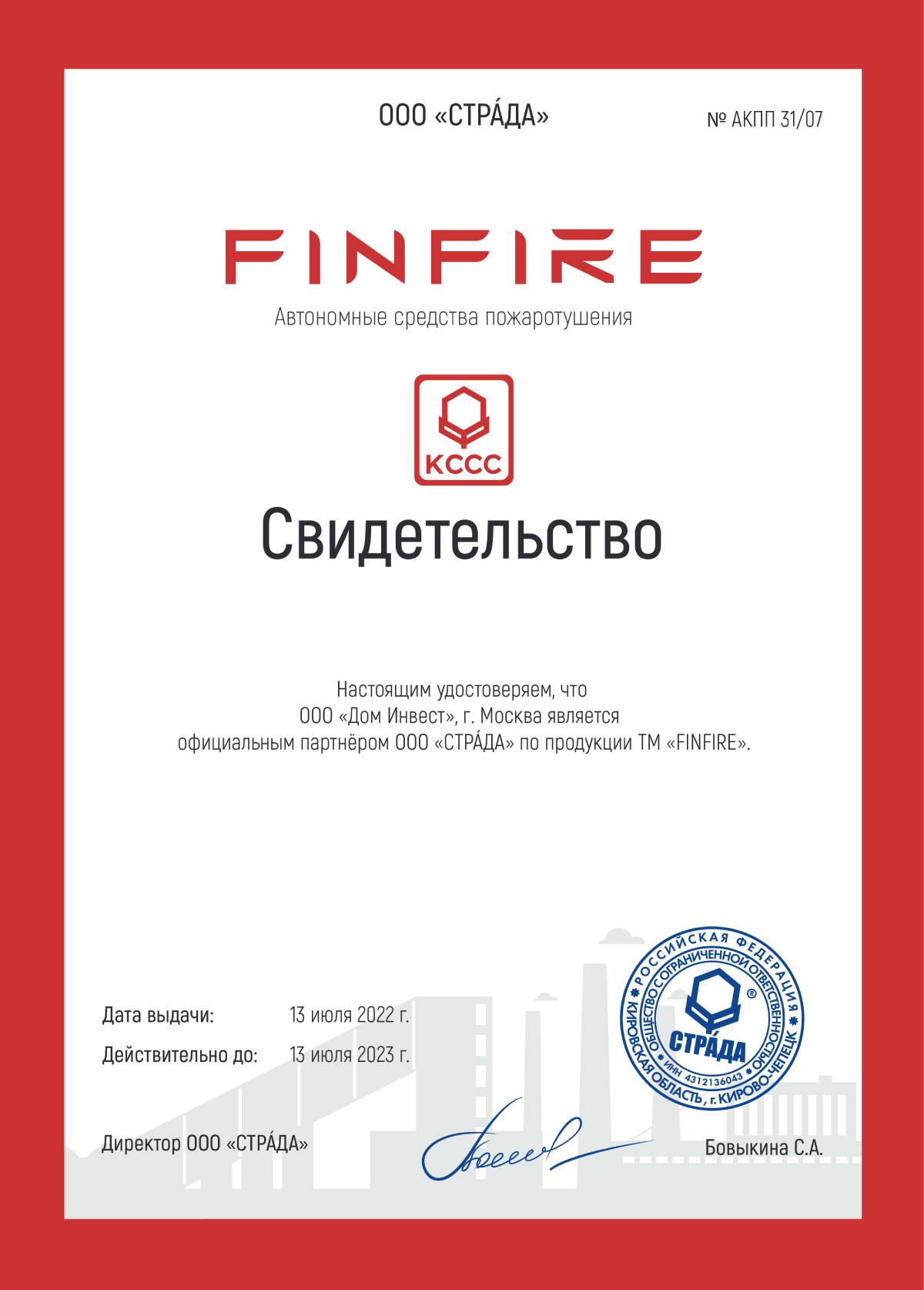 Компания ООО "Дом-инвест" является одним из Поставщиков пожарного оборудования для наших подразделений Иркутской области. Все поставки выполняются в срок и без претензий с нашей стороны.